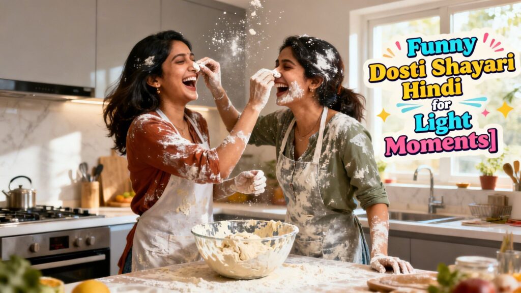 Friendship is not always serious; sometimes it is filled with fun, laughter, and silly moments. This Dosti Shayari section brings humor and joy into your friendship. It reflects the playful side of best friends and unforgettable memories. Perfect for sharing smiles and laughter.